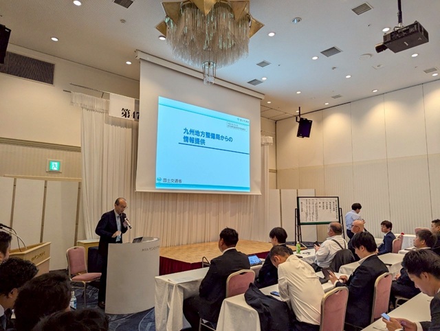 また、総会時の講演では九州地方整備局 企画調整官の宗様より、鹿児島管内における土木行政や国交省としての新たな取り組みについての説明があり、会員は熱心にメモを取っていました。